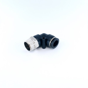 Фітинг пневматичний APL12-04 - кутовий пневматичний фітинг з зовнішньою різьбою з однієї сторони, та цангою з іншої. Ущільнення з корпусом здійснюється за допомогою гумового кільця, або конічної різьби. Варто зауважити, що цангова частина повертається незалежно від фіксації різьби в корпусі.