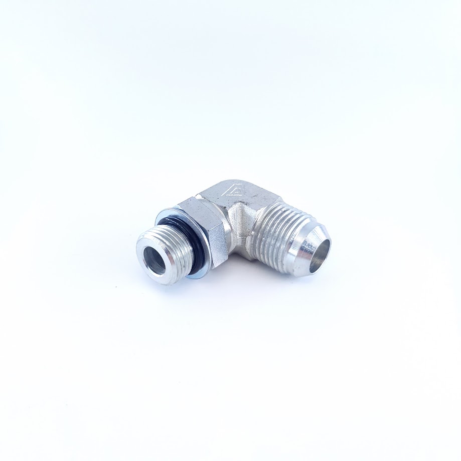 Адаптер 90* поворотний UNF3/4" - AGJ7/8" 90КГШ90-10-12 - кутовий адаптер з двома зовнішніми різьбами під шланг або трубку. Додатково на довшій частині є контргайка для фіксації в корпусі, або рамній конструкції.