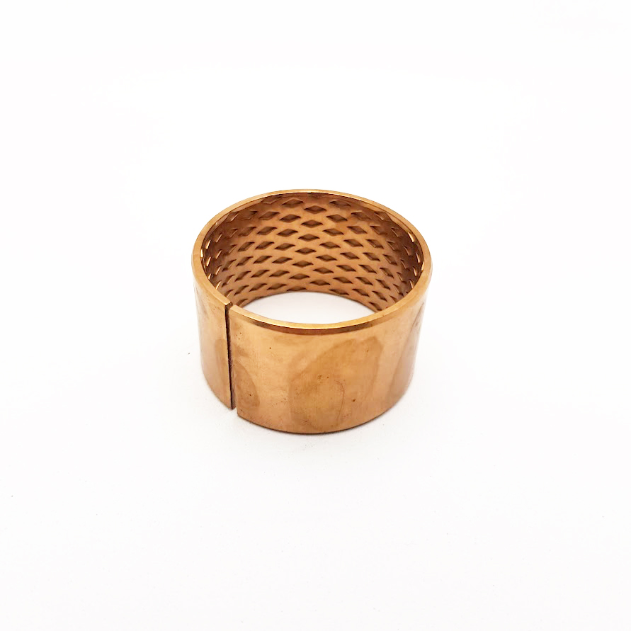 Втулка 45х50х30 Е90 - втулка ковзання розрізного типу. Виготовлена з бронзи. Зовнішня поверхня - гладка, без отвіорів. Внутрішня поверхня має перфорацію для накопичення змазки. Втулки типу E90 принципово відрізняються від типів BK-1 та BK-2 збільшеним терміном служби, та збереженням робочих поверхонь навіть при серйозному зносі самої втулки (втулки із покриттям, при його зносі починають контактувати стальною основою з пальцем чи валом)
