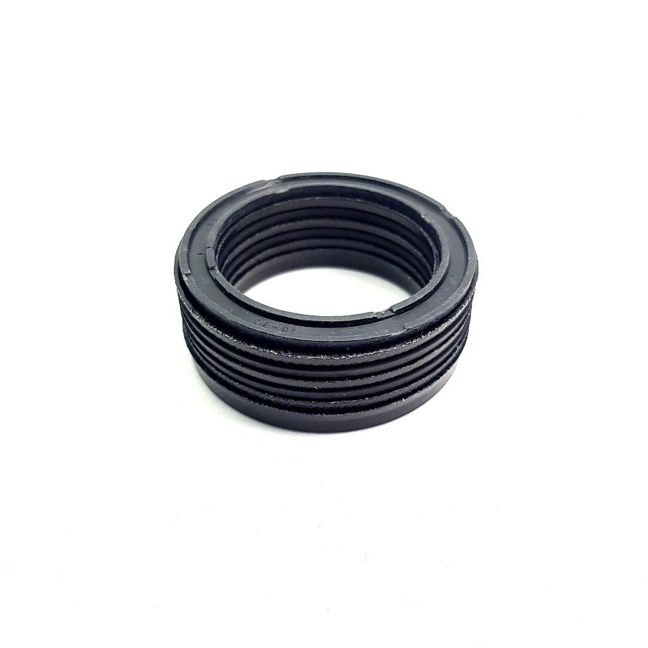 Шевронний пакет 45х60х22,5 A120 - шевронне ущільнення, або "шевронний пакет" складається з трьох видів елементів: опорного та нажимного кілець з фенольної смоли або поліаміду, та проміжних манжет, від кількості яких залежить загальна висота набору. Проміжні манжети в шевронному пакеті виконуються з гуми та/або фенольної смоли з текстильним армуванням. Особливістю даного профілю є збільшена кількість ущільнюючих кромок, можливість регулювання висоти, надійність конструкції та можливість дотискати пакет при появі протікань. Аналоги: KASTAS - K01, ALP - A120, DICHTOMATIC - DT3, HALLITE - S12-S14, DMH - DS110-112, TRELLEBORG - 1170 FABRIC