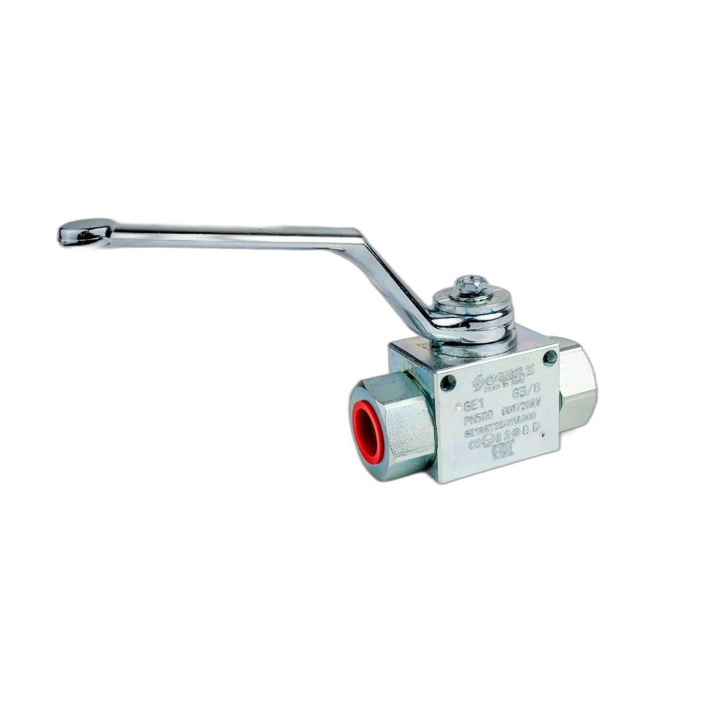 Кран GE1 G3/8 DN10 1111AB PN500 (GE1GGT25011A000) - простий кульовий кран, задачею якого є відкриття, або перекриття потоку гідравлічної рідини. Залежно від виробника та модифікації крани застрічаються з отворами для кріплення та без них, а також із внутрішніми та зовнішніми різьбами для приєднання фурнітури.