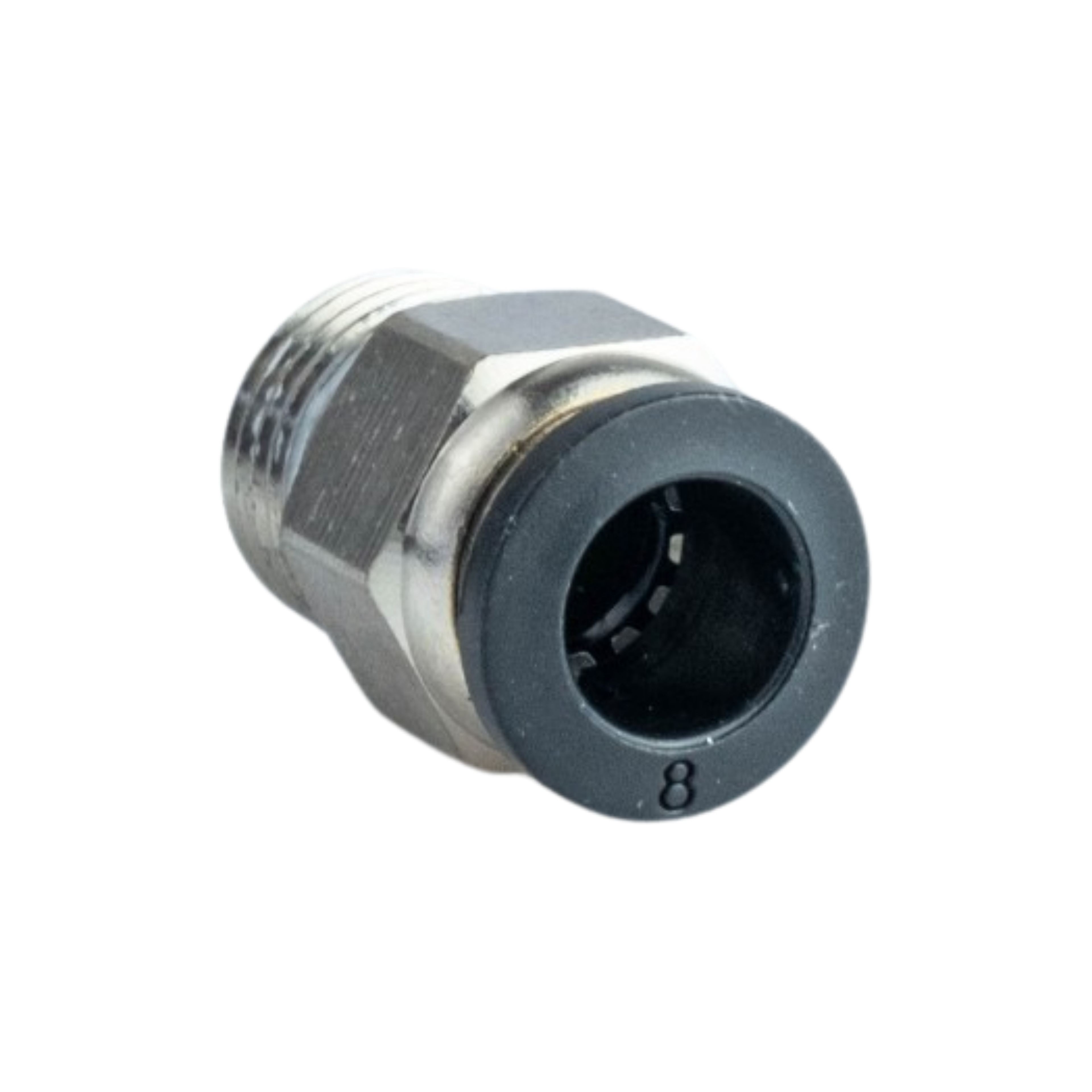 Фітинг пневматичний APC08-02 - прямий пневматичний фітинг з зовнішньою різьбою з однієї сторони, та цангою з іншої. Ущільнення з корпусом здійснюється за допомогою гумового кільця, або конічної різьби.