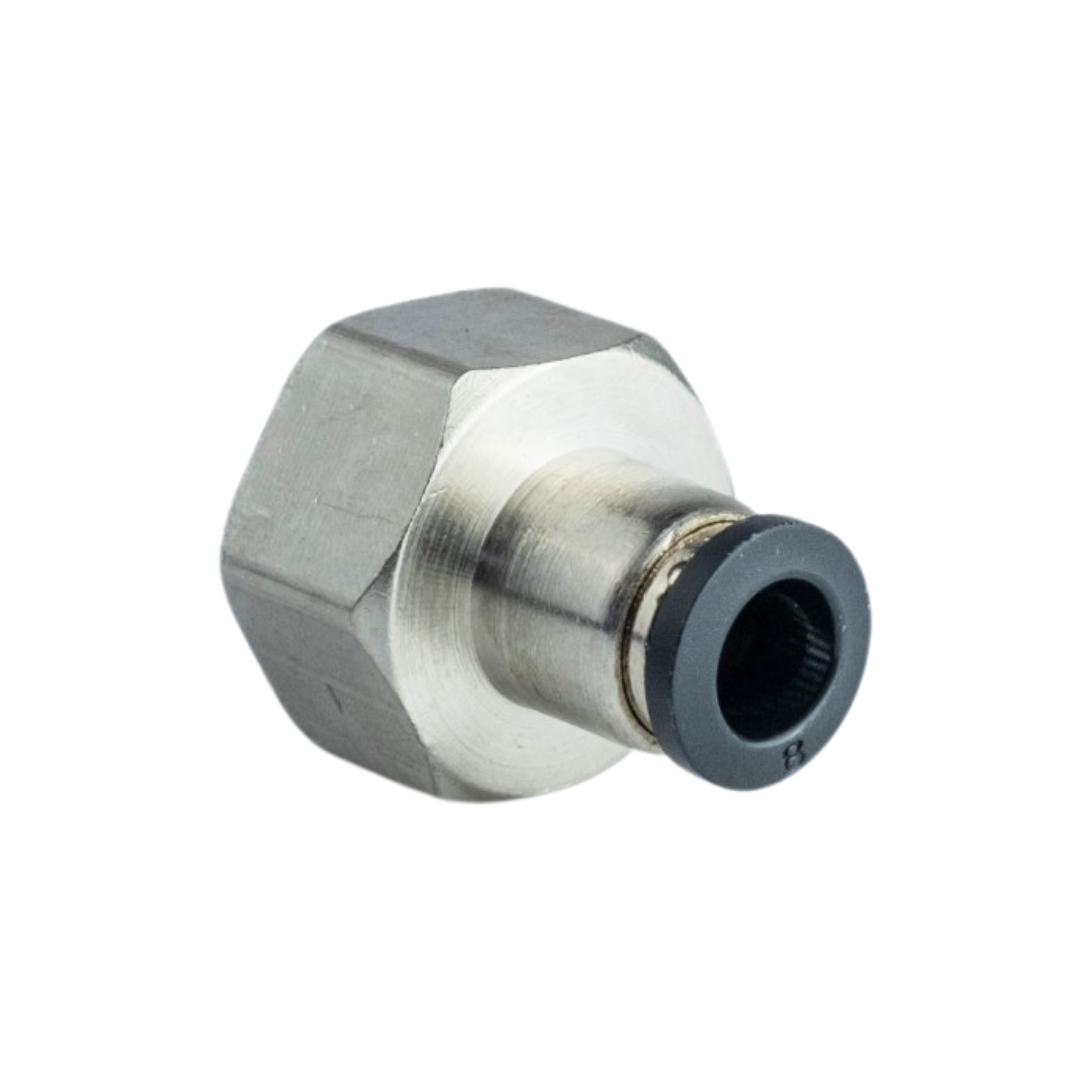 Фітинг пневматичний APCF08-04 - прямий пневматичний фітинг з зовнішньою різьбою з однієї сторони, та цангою з іншої. Ущільнення з корпусом здійснюється за допомогою гумового кільця, або конічної різьби.