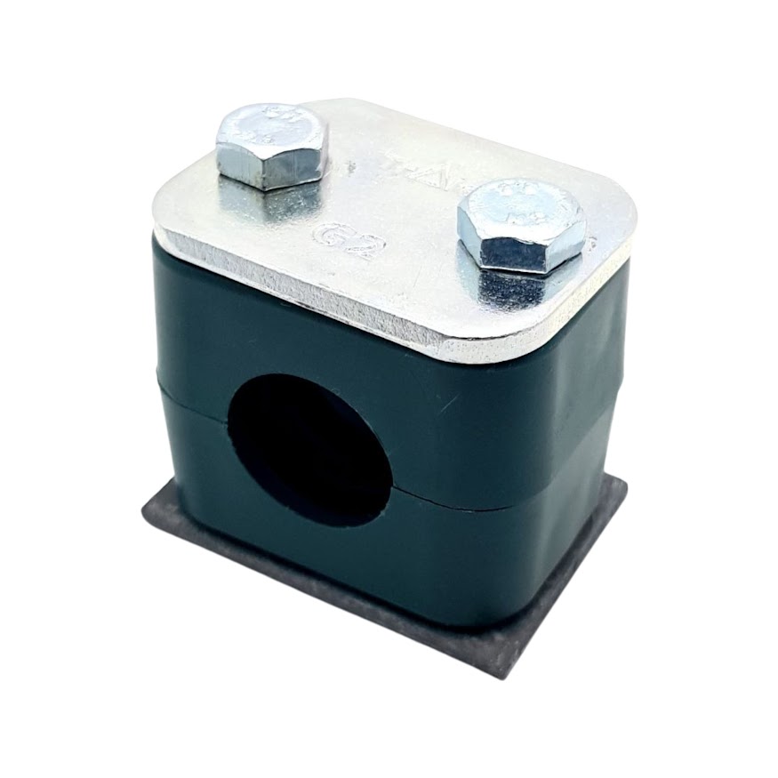 Кріплення труб Ду.16 - - деталь для фіксації гідравлічних і пневматичних магістралей. Прижим складається з 5 деталей: нижньої стальної приварної пластини, двох пластикових зажимних колодок, верхньої нажимної пластини і болта, яким вся конструкція стягується.